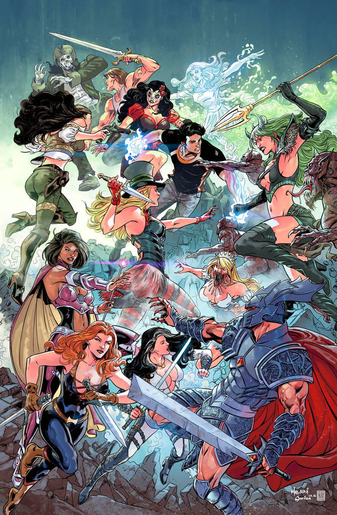 SERIES FINALE! HUGE, TRIPLE-SIZED ISSUE! OH, THE PLACES… The grand finale of Zenescope's longest running title is here in this over-sized event issue! Sela, the students of Arcane Acre, and the Realm Knights, enter the final battle against Bloody Bones! Wonderland, Neverland, Oz, Myst, and Earth must stand together against the greatest threat to ever threaten the realms of power.