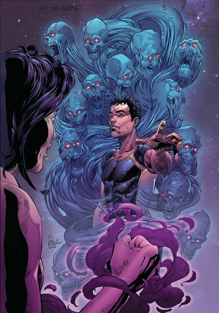 The casts of Zenescope's flagship series - Grimm Fairy Tales, Robyn Hood, and Hellchild - unite for an event to end all comic book events… the apocalypse. As one of their own struggles to stay alive after their clash with the Horsemen, the divided heroes find themselves again at odds as they move toward their final battle. Meanwhile, the witch hunt for the mysterious bearer of the Dark Light continues, leading former friends to a showdown in the crumbling center of the Earth.