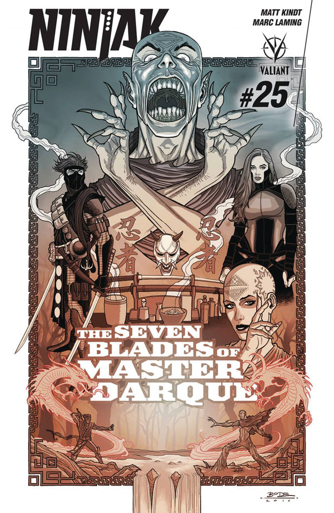 Darque destinies! Once sworn enemies, Ninjak and the Shadow Seven have forged an uneasy alliance to accomplish their singular goal: kill Master Darque! But why can't Colin King shake the feeling that he's leading a suicide mission, or that his mysterious benefactor, Sandria Darque, isn't giving him the whole story? Ninjak's about to confront a terrifying truth…and the answers just might destroy him!