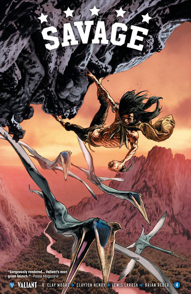 Out of the jungle, into the fight… When all hope seems lost, the final threads tethering the Sauvage family to their humanity will finally be severed. Just as the beasts within begin to take hold, the final revelation about the prehistoric island that has claimed them will finally stand revealed. But will this twist of fate offer a last chance at rescue…or forever seal their doom? The past and present collide as Valiant's next great hero rises in a baptism of bloodshed! Be there as acclaimed writer B. Clay Moore (Hawaiian Dick) and explosive artists Clayton Henry (HARBINGER WARS) and Lewis LaRosa (BLOODSHOT REBORN) bring their primal origin story to a close!