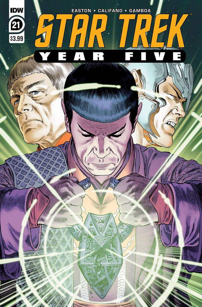 With Spock still missing, the crew of the Enterprise needs to figure out where-and when-he is if they want to save the future! Meanwhile, on Vulcan, Spock is faced with a choice that won't only change his life, but Vulcan society as he knows it! The final voyages of the original mission continue in this episode from writer Brandon Easton (Transformers: War for Cybertron, Thundercats) and artist Silvia Califano (Star Trek: Year Five, X-Files: Case Files)